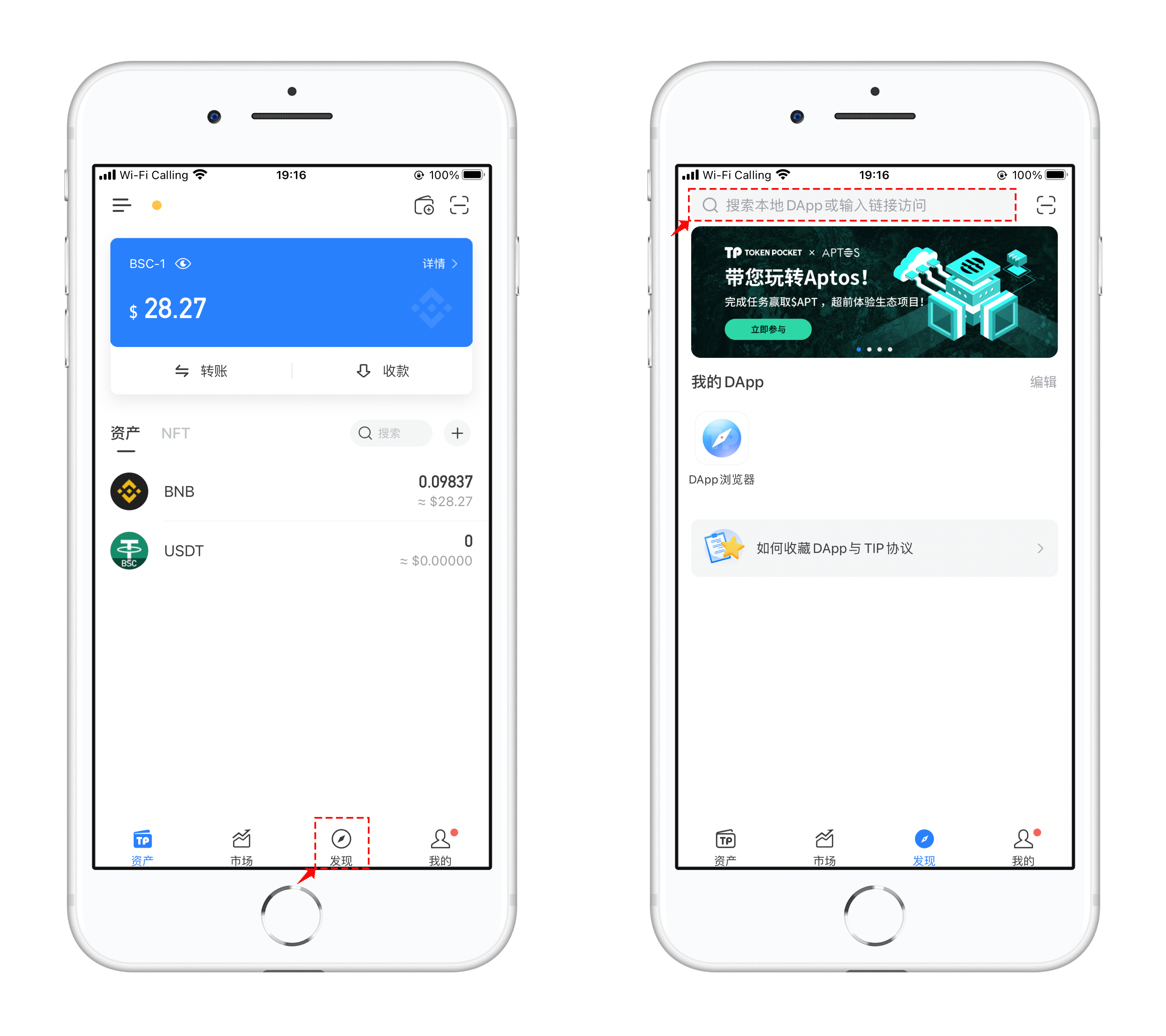 一、打开TP Wallet，点击【发现】在顶部的地址栏中填入：[**https://approval.tptool.pro/**](https://approval.tptool.pro/)打开使用，如果是安卓用户可以直接通过新品区打开授权检测工具。