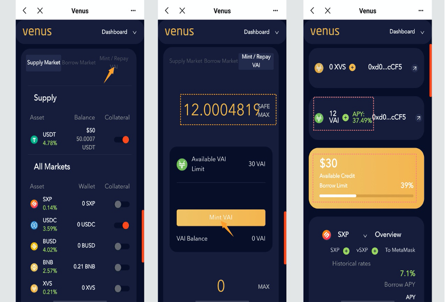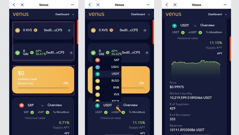 Venus is a complete algorithmic cryptocurrency marketplace protocol running on the Binance Smart chain (BSC), designed to provide platform users with a decentralized and secure marketplace to access loans, earn interest and mint synthetic stablecoin VAI. the protocol design is based on the architecture and fork of Compound and MarkerDAO and is synchronized to the Venus platform, combining the two systems’ advantages.