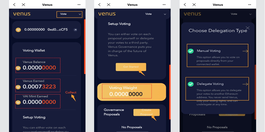 Venus is designed for community autonomy, with no pre-determination by the team, developers or founders, the protocol will be executed by the proposal of those holding XVS tokens. Users holding XVS will receive votes corresponding to them, and these votes can be allocated to themselves, or they can fill in someone else's address to have someone else vote by proxy.