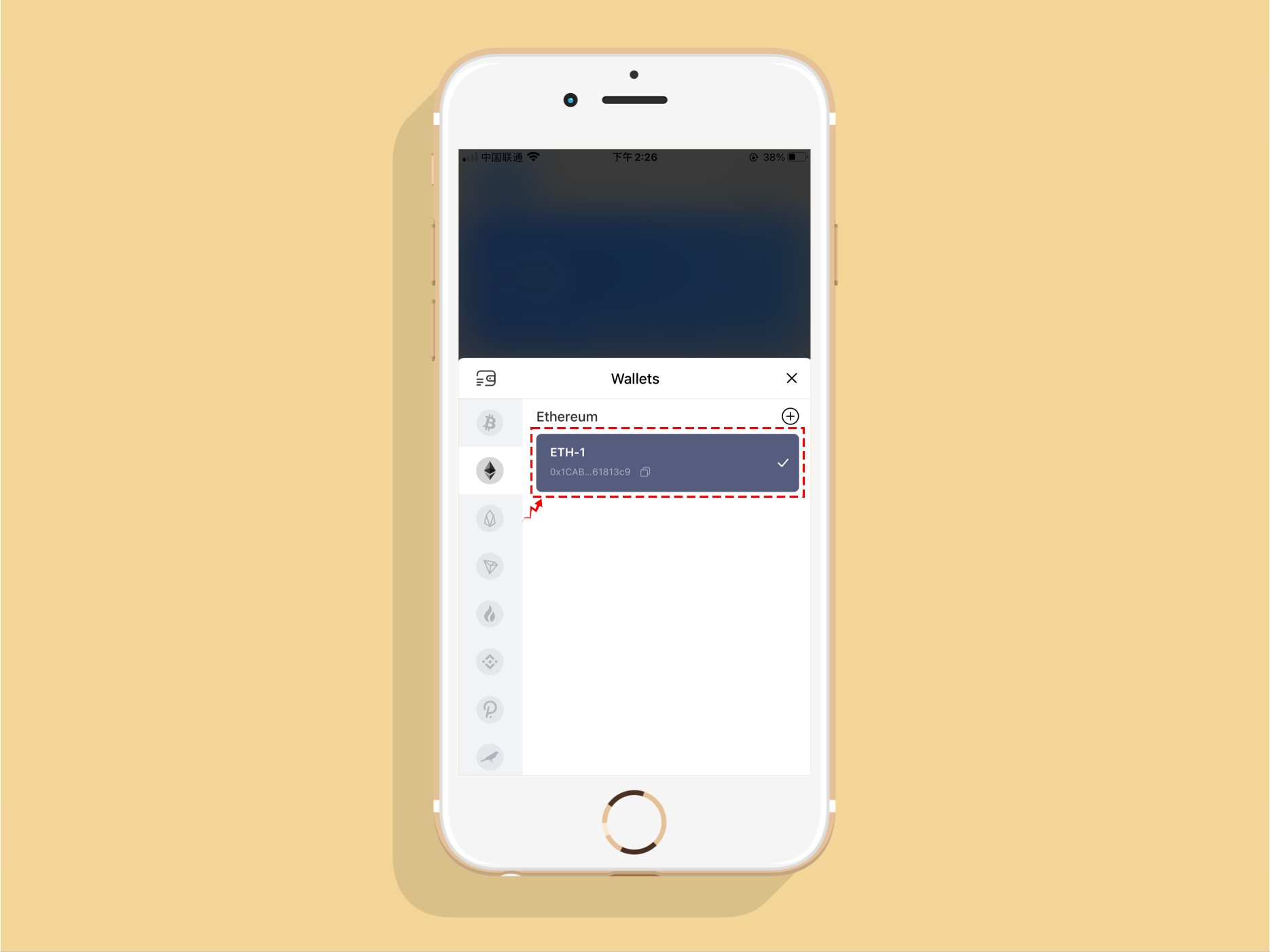 3. Enter the wallet list and select the Ethereum wallet (or click + to create a wallet).