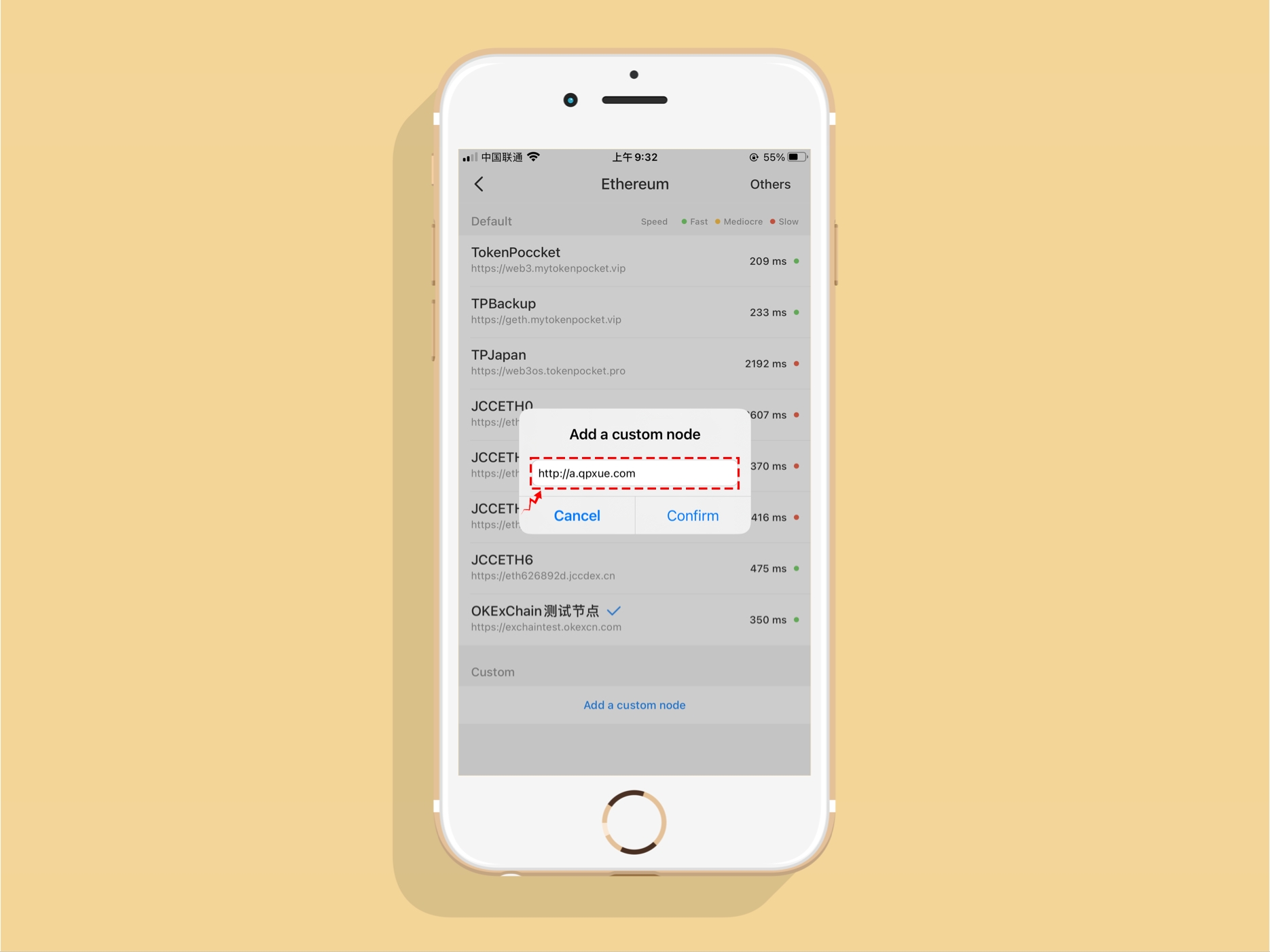 8. Can add two nodes in the input field: https://a.qpxue.com or https://exchaintest.okexcn.com